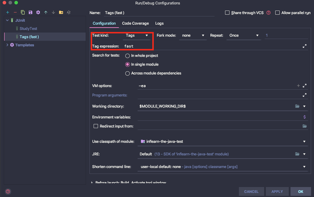 pom.xml 추가 : fast 혹은 slow 태그가 붙은 테스트만을 실행시킨다.
