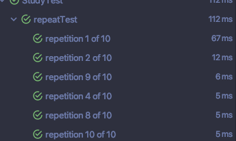 @RepeatedTest(value = 10, name = "{displayName}, {currentRepetition} / {totalRepetitions}")