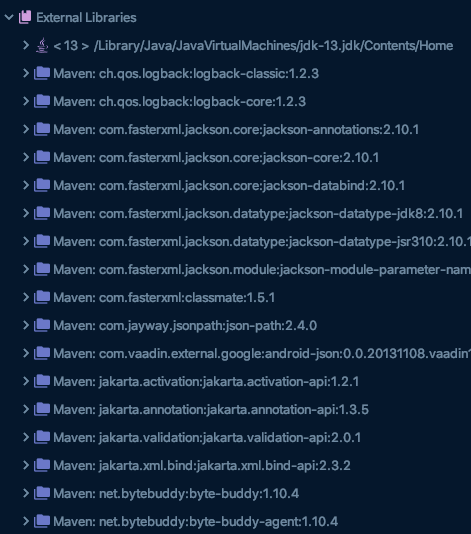 spring-boot-starter-web를 추가할 경우 대부분의 기본적인 의존성들이 들어온다.