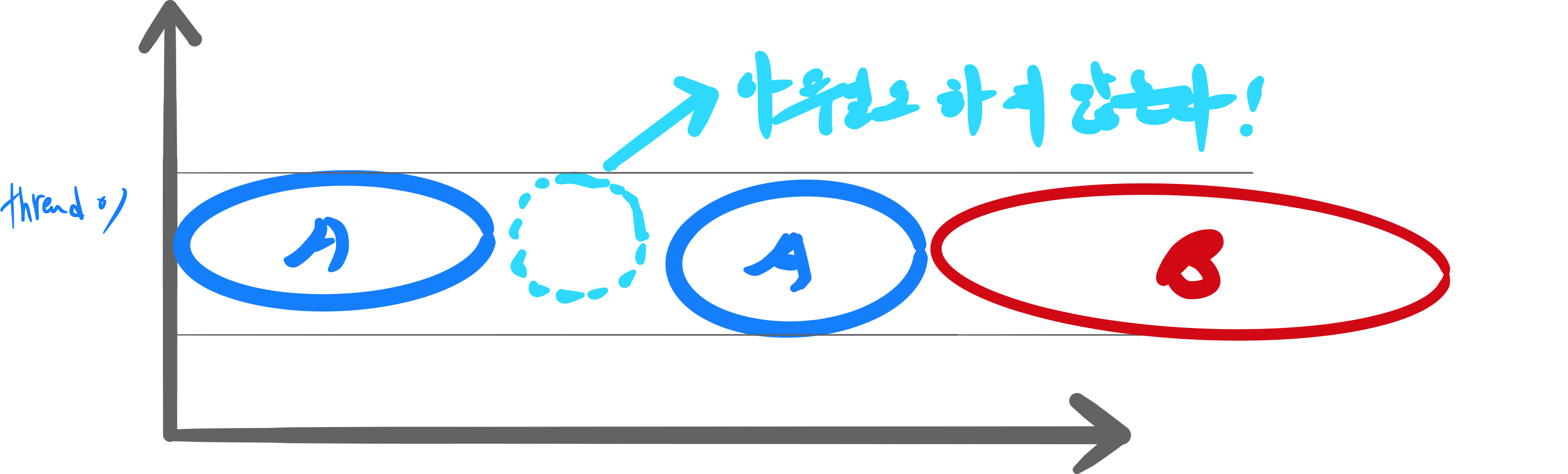 해당 경우에는 점선에 보이는 것처럼 아무것도 하지않는 구간이 발생한다. 이는 A에 대한 사용자의 요청을 기다리는 구간이다.
