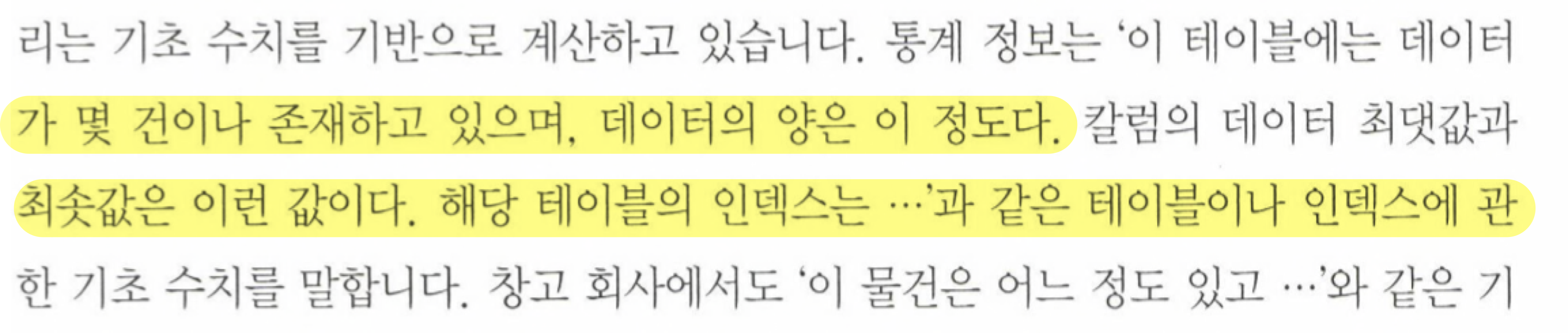 비용을 계산하기 위한 기초 수치, 통계정보