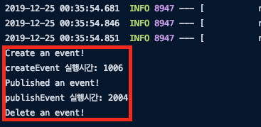 System.out.println("publishEvent 실행시간: "+(System.currentTimeMillis()-begin));